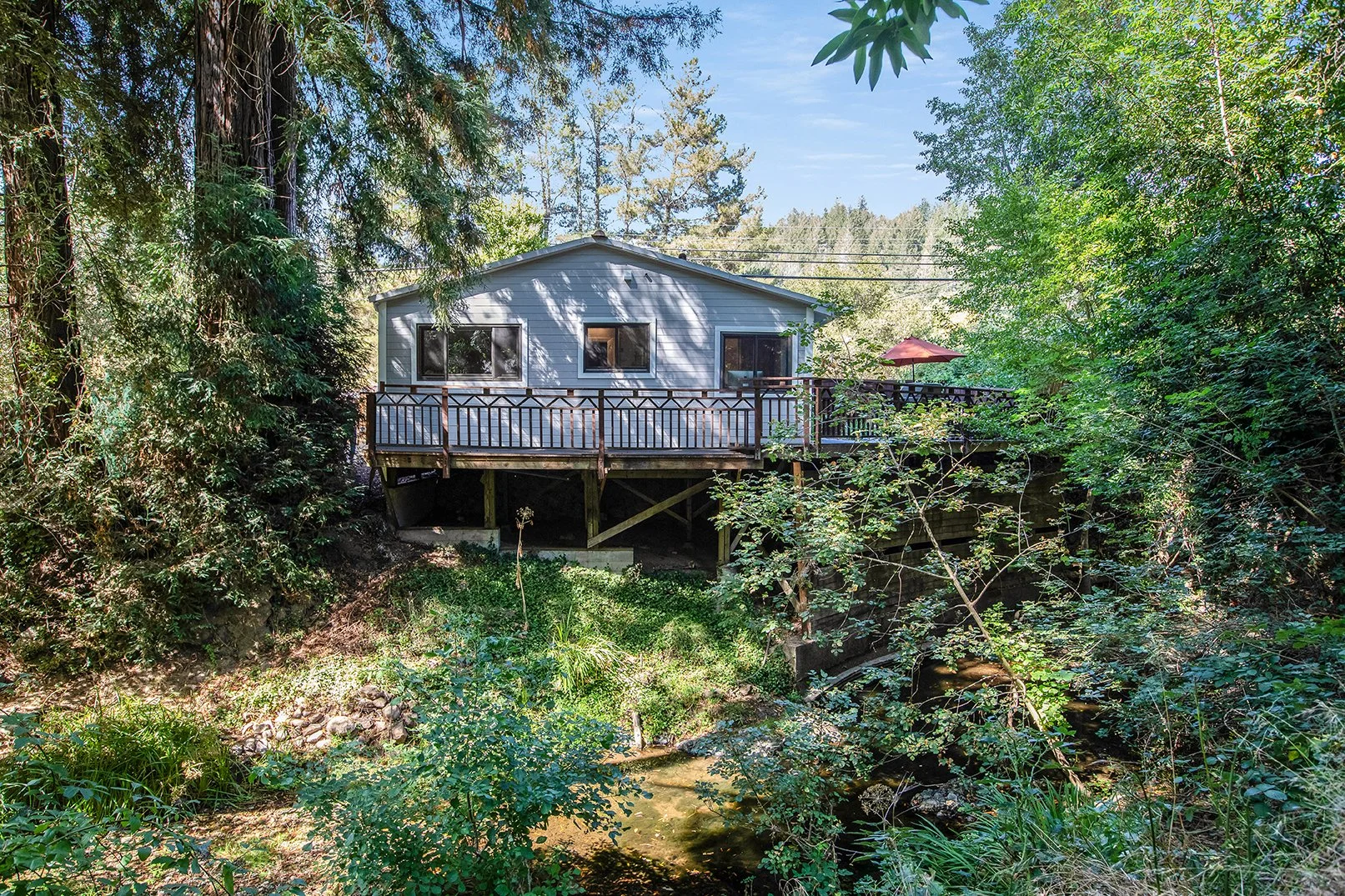 Welcome to the jewel box of Forest Knolls! Set amongst the greenery of San Geronimo Valley and nestled along the creek, this idyllic two bedroom / two bath home showcases Valley living at its finest. This single level home features a kitchen with stainless steel appliances, custom kitchen island, marble countertops and cherry wood cabinetry throughout. Along with an ideal floor plan, the home showcases one bedroom with ensuite bath and another with walk-in closet, vaulted ceilings, wood floors, radiant wall heaters (one of the cleanest types of heat!), central vacuum system & fireplace with granite hearth. The office nook is the perfect place to work from home and enjoy the natural beauty of the creek. Feel safe at home with interior ceiling sprinklers & Nest smart-home security.
