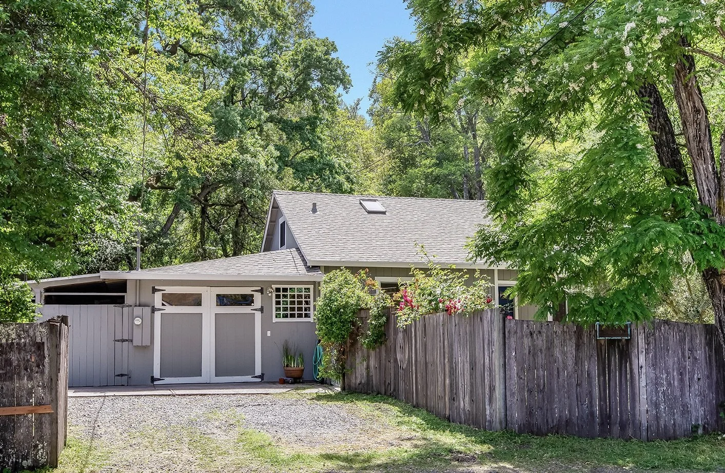 Live the California Dream in this charming home set in the flats of Woodacre. Situated on a mostly level 10,000 sq. ft. lot, this bright three bedroom / one bath home is your own private oasis. The main level features a remodeled kitchen with stainless steel appliances, quartz countertops & dining area, an office nook, formal living room and two bedrooms with one bath. The upper level has one bedroom and a large attic/bonus space perfect to convert to another bedroom, gym or to create your primary suite (buyer to investigate). Enjoy a fully fenced yard with lush gardens and forest, expansive 810 sq. ft. deck, large storage shed and access to the beautiful creek. Use the garage for your car or keep as a workshop and enjoy the forested view out of its large picture window as you work. Close proximity to Public Transportation, Woodacre Improvement Club with gym and pool, The Woodacre Market and some of West Marin’s most beautiful trails and beaches.